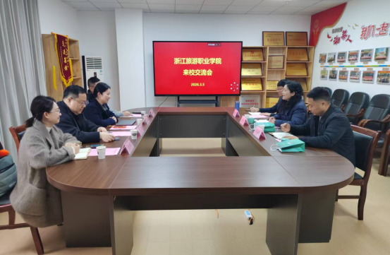 (通讯员:周国银)春启新程,交流致远。为深化餐饮职业教育校际合作,互学专业建设与人才培养先进经验,2026 年 3 月 5 日上午,浙江旅游职业学院酒店管理与厨艺学院副院长倪淑颖带队,携烹饪工艺与营养、西式烹饪工艺、餐饮智能管理专业主任一行到访湘菜学院,双方于湘菜大楼 506 会议室开展专业交流座谈会。湘菜学院副院长王静萍出席,湘菜研究院办公室主任蔡振林参与交流,座谈会由湘菜学院餐饮面点教研室主任周国银主持。